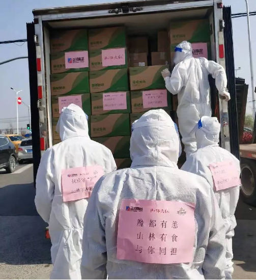 4月7日,正邦上海山林食品有限公司向上海金山區(qū)亭林鎮(zhèn)政府、浦東新區(qū)臨港片區(qū)方艙醫(yī)院總共捐贈價(jià)值50萬元生活防疫物資。
