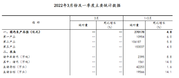 統(tǒng)計(jì)局:一季度末,生豬存欄42253萬(wàn)頭,同比增長(zhǎng)1.6%