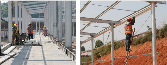 圖|正在建設(shè)的擠奶大廳觀光通道