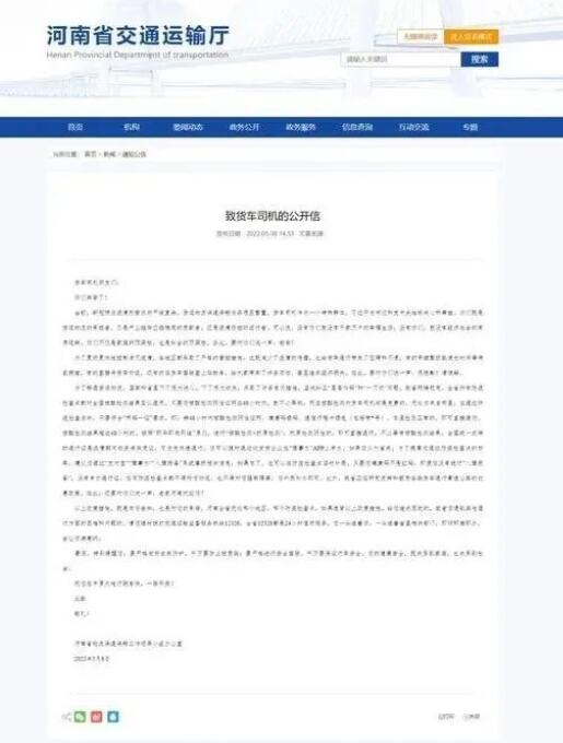 此外,信中提到,河南省正在研究支持和鼓勵各類貨車通行高速公路的優(yōu)惠政策。