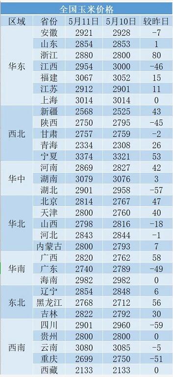 2022年5月11日玉米價(jià)格
