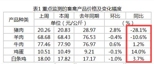 據(jù)農(nóng)業(yè)農(nóng)村部“全國農(nóng)產(chǎn)品批發(fā)市場價(jià)格信息系統(tǒng)“監(jiān)測,本周(2022年05月13日--2022年05月19日)重點(diǎn)監(jiān)測的畜禽產(chǎn)品豬肉、羊肉、牛肉、雞蛋和白條雞與上周相比,變化幅度在-1.0~2.8%之間(如下表所示)。