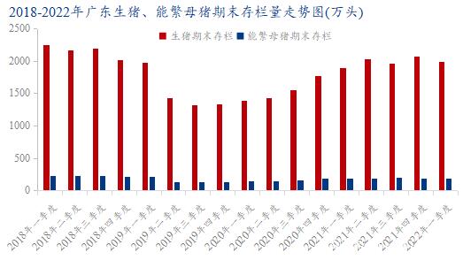 圖1 2018-2022年廣東生豬、能繁母豬期末存欄量走勢(shì)圖