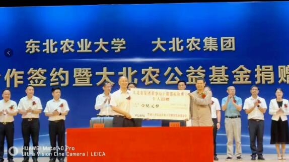 7月18日,大北農(nóng)集團(tuán)與東北農(nóng)業(yè)大學(xué)戰(zhàn)略合作簽約儀式上,大北農(nóng)集團(tuán)向東北農(nóng)業(yè)大學(xué)捐贈(zèng)1億元人民幣。