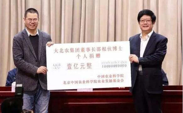 邵根伙個(gè)人向中國農(nóng)業(yè)科學(xué)院和北京中國農(nóng)業(yè)科學(xué)院農(nóng)業(yè)發(fā)展基金會(huì)捐贈(zèng)1億元