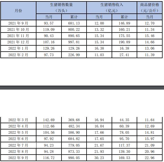 生豬銷售收入環(huán)比、同比上升較大的主要原因是生豬銷量上升,以及生豬價(jià)格大幅上漲。