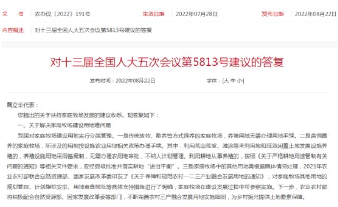 事實上,近年來國家對于家庭農(nóng)場的發(fā)展是不斷給予政策鼓勵,今年8月,農(nóng)業(yè)農(nóng)村部網(wǎng)站公布對對十三屆全國人大五次會議第5813號建議的答復,傳統(tǒng)放牧、散養(yǎng)等方式飼養(yǎng)的家庭牧場,養(yǎng)殖用地無需辦理用地手續(xù)。