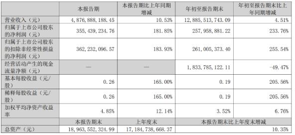 前三季度實現(xiàn)營業(yè)收入128.86億元,同比增4.51%;歸母凈利潤2.58億元,同比增233.76%。