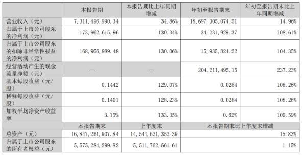 前三季度實(shí)現(xiàn)營(yíng)業(yè)收入186.97億元,同比增長(zhǎng)14.96%;實(shí)現(xiàn)歸屬于上市公司股東的凈利潤(rùn)虧損3423萬(wàn)元,同比增108.61%。