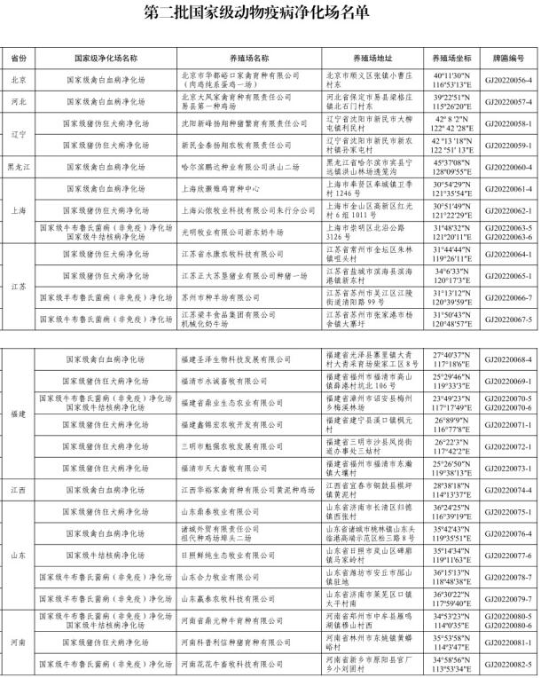 農(nóng)業(yè)農(nóng)村部公布第二批國(guó)家級(jí)動(dòng)物疫病凈化場(chǎng)名單,溫氏、新希望等榜上有名