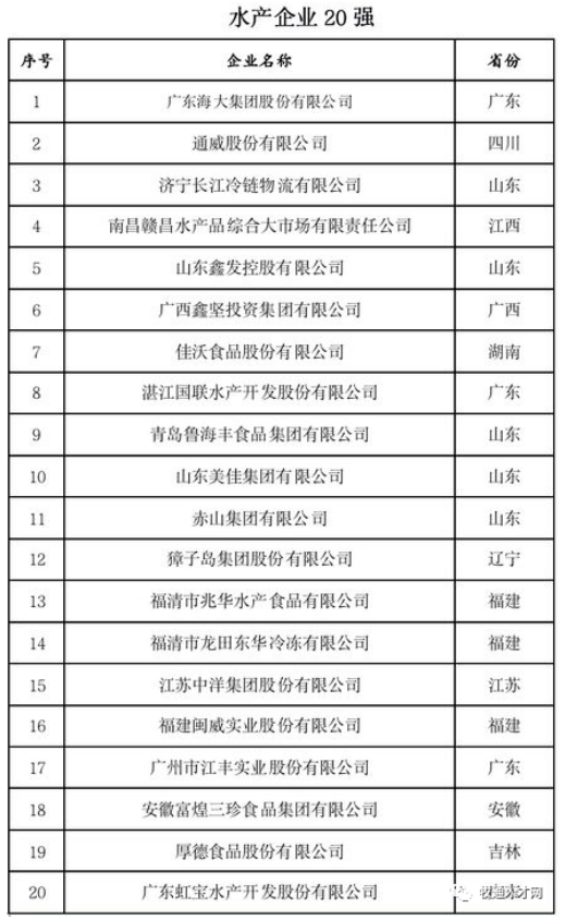 水產(chǎn)企業(yè)20強(qiáng)中,海大集團(tuán)、通威股份排名前2。2021年,海大集團(tuán)營收859.99億,通威股份營收634.91億元。