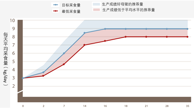 4、哺乳第16天應(yīng)達到最大飼料供給量。