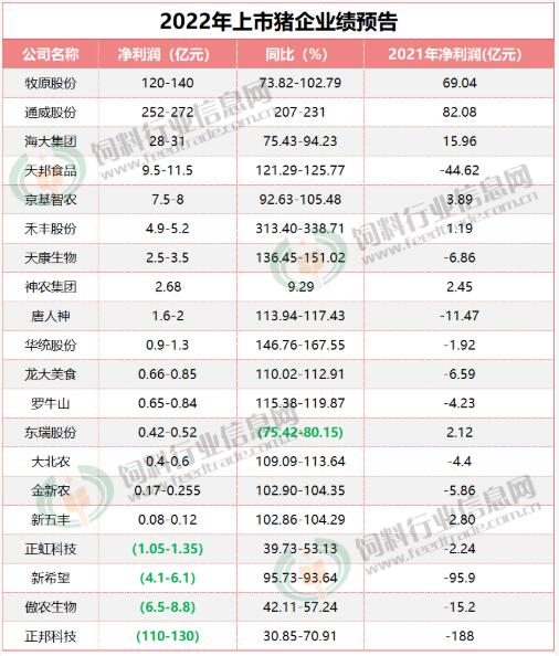 再看凈利潤,得益于2022年下半年豬價(jià)的一路走高,80%的豬企同比2021年扭虧為盈,且與比去年相比,均翻了1-3倍,而虧損的4家豬企與2021年相比凈利潤也有大幅度的減虧。