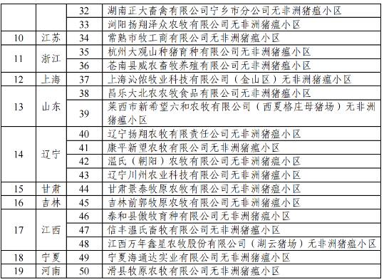 農(nóng)業(yè)農(nóng)村部公布50個(gè)非洲豬瘟無疫小區(qū)、13個(gè)布魯氏菌病無疫小區(qū)、3個(gè)牛結(jié)核病無疫小區(qū)