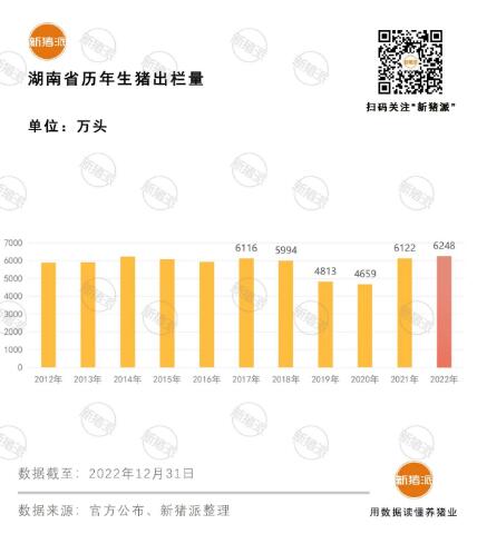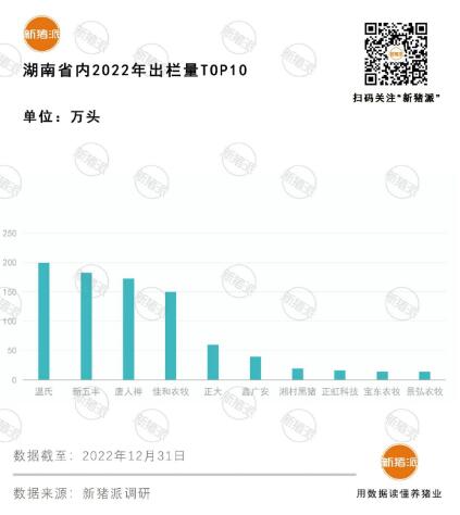 2022年湖南養(yǎng)殖產(chǎn)業(yè)發(fā)生重大變革,新五豐收購天心種業(yè)100%股權(quán),兩家公司生產(chǎn)數(shù)據(jù)合并后生豬出欄量躍居湖南省第二位。
