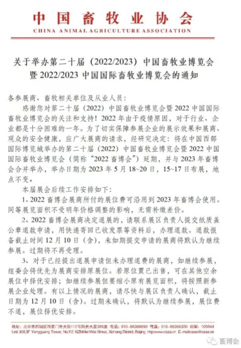 第二十屆(2022/2023)中國畜牧業(yè)博覽會將于2023年5月18-20日舉辦