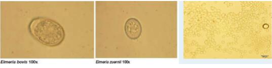 據(jù)報(bào)道,全球至少有20多種不同的艾美耳球蟲(chóng),其中在我國(guó)能分離出來(lái)的球蟲(chóng)種類(lèi)有12種以上。但不同的球蟲(chóng)種類(lèi)致病性不一樣,有些甚至沒(méi)有致病性,所以在檢測(cè)糞便中球蟲(chóng)卵囊過(guò)程中需要有專(zhuān)業(yè)的知識(shí),尤其需要專(zhuān)業(yè)的檢測(cè)機(jī)構(gòu)判斷牧場(chǎng)感染的球蟲(chóng)種類(lèi)。目前在牧場(chǎng)最常見(jiàn)、致病性最強(qiáng)的球蟲(chóng)種類(lèi)是牛艾美耳球蟲(chóng)和邱氏艾美耳球蟲(chóng),國(guó)外放牧條件下會(huì)有阿拉巴艾美耳球蟲(chóng)。