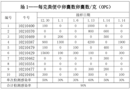 連續(xù)跟蹤犢牛糞便卵囊檢測(cè)結(jié)果