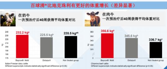 最后,百球清比地克珠利有更好的體重增長(zhǎng),無(wú)論奶牛和肉牛,實(shí)驗(yàn)結(jié)果都是一致的。