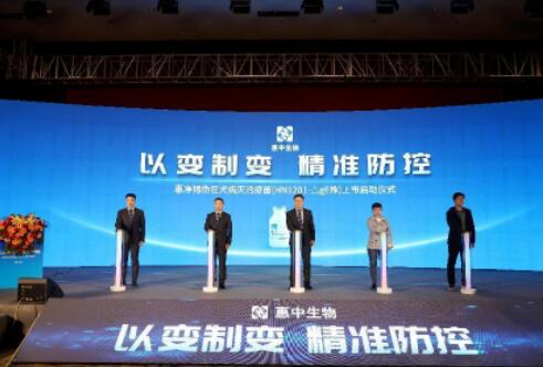 惠中生物總經理趙曉東、惠中生物副總經理王冰飛、普萊柯總工程師王延輝、國家獸用藥品工程技術研究中心主任助理張云靜、惠中生物豬苗事業(yè)部技術總監(jiān)顧帥共同見證惠凈(豬偽狂犬病滅活疫苗<HN1201-ΔgE株>)盛大上市,助力豬偽狂犬防控及深度凈化。