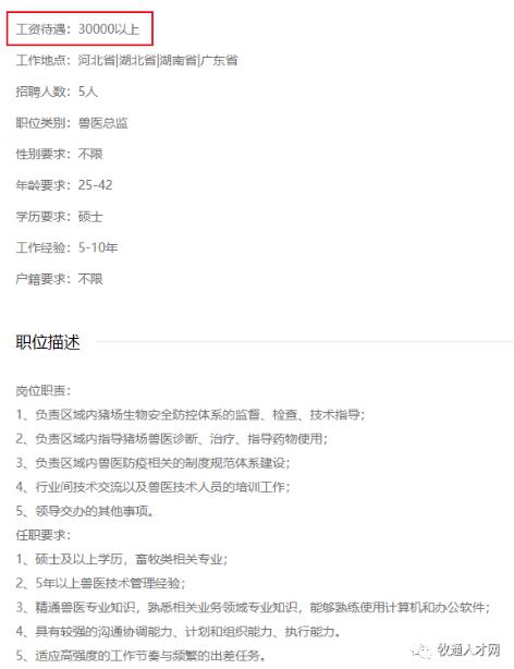 待遇優(yōu)渥還得看獸醫(yī)崗,公司在招獸醫(yī)崗待遇1-2W,大區(qū)獸醫(yī)總監(jiān)更3W起,但要求碩士起步。