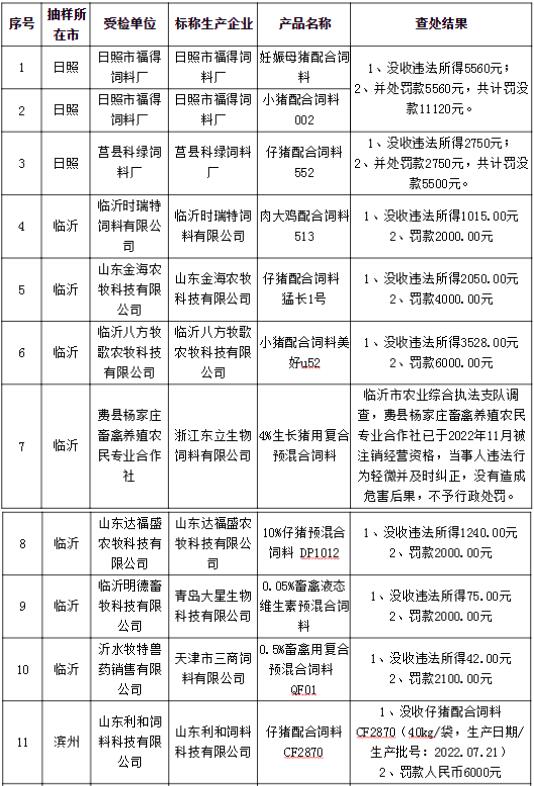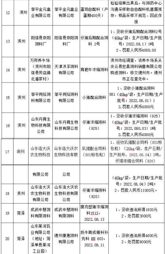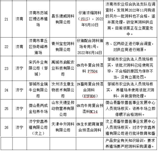 山東官方發(fā)布不合格飼料產(chǎn)品名單,57.7%在濱州、臨沂