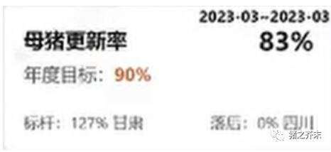 首先,牧原將母豬更新率的目標(biāo)定為90%,但當(dāng)前值只有83%。而作為標(biāo)桿的甘肅甚至達(dá)到了127%。為什么牧原集團(tuán)要追求這么高的母豬更新率,這一點我并不理解。有朋友告訴我,其實牧原在過去幾年一直是這么做的,持續(xù)保持母豬的高淘汰率和高更新率。這樣的話才能充分保證他們母豬生產(chǎn)成績。在牧原的管理體系里,有問題的母豬直接淘汰。他們認(rèn)為這樣成本最低。如果將有問題的母豬繼續(xù)飼養(yǎng),成本反而更高。這也是他們要保持高更新率的一個主要原因。