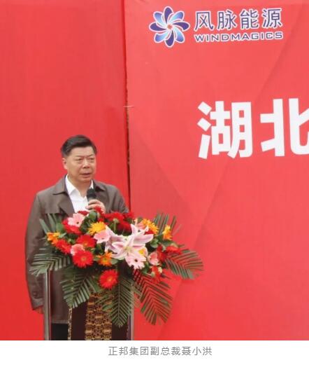 風(fēng)脈能源董事長(zhǎng)葉毅、正邦集團(tuán)副總裁聶小洪為開工儀式致辭。
