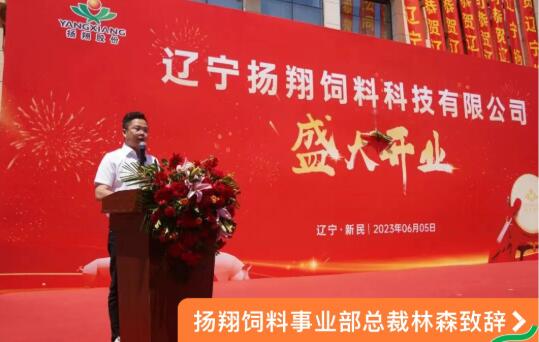 慶典儀式上,揚翔股份飼料事業(yè)部總裁林森發(fā)表致辭,向長期關(guān)心和支持揚翔股份的各級領導和嘉賓表示了衷心的感謝,并就遼寧揚翔飼料科技有限公司的基本情況和發(fā)展規(guī)劃向與會嘉賓做了詳細闡述。