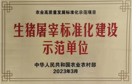6月6日,在世界食品安全日到來之際,以“做好放心豬肉,守護(hù)食品安全”為主題的神農(nóng)肉業(yè)國家生豬屠宰標(biāo)準(zhǔn)化建設(shè)示范單位授牌儀式隆重舉行。神農(nóng)集團(tuán)下屬的全資控股子公司,神農(nóng)肉業(yè)成功榮獲由國家農(nóng)業(yè)農(nóng)村部頒發(fā)的“2022生豬屠宰標(biāo)準(zhǔn)化建設(shè)示范單位”榮譽(yù)稱號(hào)。