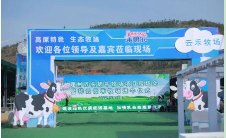 為認(rèn)真貫徹落實(shí)省、州黨委、政府加快推進(jìn)大理乳業(yè)高質(zhì)量發(fā)展的決策部署,推進(jìn)大理州打造世界一流“綠色食品牌”示范區(qū)建設(shè),以萬頭牧場項(xiàng)目為契機(jī)全力推動全州乳產(chǎn)業(yè)高質(zhì)量快速發(fā)展。6月16日上午,來思爾乳業(yè)第二座萬頭牧場,也是此次大理州“8+1”萬頭牧場建設(shè)項(xiàng)目首個建成完工的牧場——來思爾云禾牧場進(jìn)牛儀式在大理州祥云縣禾甸鎮(zhèn)隆重舉行。中共大理州委副書記、州長陳真永,州人大副主任王正林,州政協(xié)副主席施雙林,州政府黨組成員、一級巡視員吉向陽,各州級相關(guān)單位和各縣相關(guān)領(lǐng)導(dǎo)出席了儀式。來思爾乳業(yè)總經(jīng)理馬萬平出席了儀式并作表態(tài)發(fā)言。