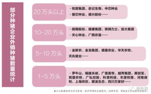 各大企業(yè)結(jié)合自身優(yōu)勢,發(fā)展種豬業(yè)務(wù)“各顯神通”。據(jù)農(nóng)財寶典記者觀察與初步統(tǒng)計,全國種豬銷售20強(qiáng),多數(shù)為集團(tuán)養(yǎng)殖公司。