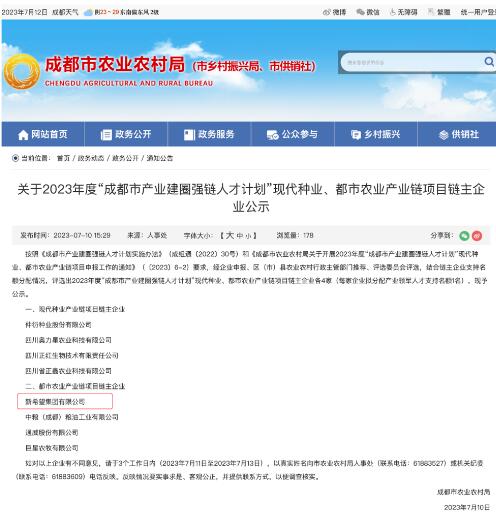 新希望集團(tuán)入選成都市都市農(nóng)業(yè)產(chǎn)業(yè)鏈鏈主企業(yè)
