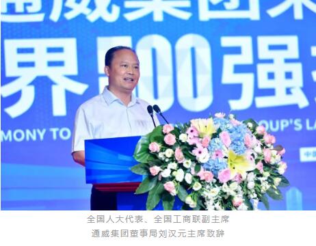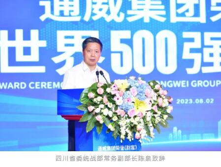 陳泉常務(wù)副部長致辭表示,通威集團(tuán)榮登《財(cái)富》世界500強(qiáng),既是企業(yè)發(fā)展的重要里程碑,也是四川民營經(jīng)濟(jì)發(fā)展的一件大喜事?;仡欉^去,波瀾壯闊的四川改革開放史,就是一部民營經(jīng)濟(jì)發(fā)展史、就是一部民營企業(yè)家奮斗史。通威集團(tuán)和劉漢元主席就是其中的杰出代表和生動(dòng)展示。41年來,通威集團(tuán)始終與黨同心、與時(shí)代同行,堅(jiān)持產(chǎn)業(yè)報(bào)國、實(shí)業(yè)強(qiáng)國,深耕綠色農(nóng)業(yè)和光伏新能源產(chǎn)業(yè),走出了一條自主創(chuàng)新的高質(zhì)量發(fā)展之路。習(xí)近平總書記指出,民營企業(yè)要拓展國際視野,增強(qiáng)創(chuàng)新能力和核心競爭力,形成更多具有全球競爭力的世界一流企業(yè)。希望通威集團(tuán)以進(jìn)入世界500強(qiáng)為契機(jī),站上新起點(diǎn)、奮進(jìn)新征程,聚焦實(shí)業(yè)、做精主業(yè)、深耕專業(yè),不斷把企業(yè)做得更強(qiáng)、更優(yōu)、更大,以百年心態(tài)做百年企業(yè),真正把通威建設(shè)成為具有全球競爭力的世界一流企業(yè),為譜寫中國式現(xiàn)代化四川新篇章作出更大貢獻(xiàn)!