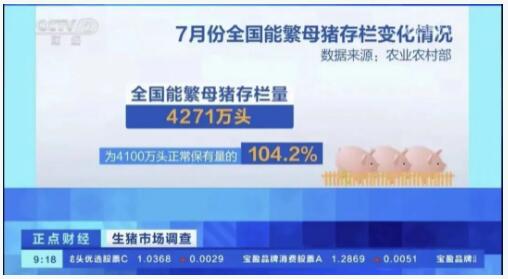 7月能繁母豬存欄4271萬頭,處于綠色區(qū)域上線