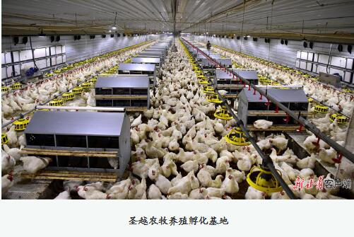 圣越農(nóng)牧探索形成種質(zhì)原料安全化、飼養(yǎng)加工自動(dòng)化、管控檢測(cè)標(biāo)準(zhǔn)化、管理系統(tǒng)智能化和全產(chǎn)業(yè)鏈、全供應(yīng)鏈、全循環(huán)鏈、全價(jià)值鏈“四化四鏈”發(fā)展模式,確保了“優(yōu)質(zhì)玉米種植烘干-飼料加工-種雞育雛-種蛋生產(chǎn)-雞苗孵化-肉雞養(yǎng)殖-屠宰分割-熟食加工-冷鏈物流-廢棄物綜合利用”十個(gè)鏈條耦合銜接,“種-飼-養(yǎng)-加-銷-余料轉(zhuǎn)化”六大板塊閉環(huán)供應(yīng),形成了“資源-產(chǎn)品-廢棄物-再生資源”高質(zhì)量循環(huán)全產(chǎn)業(yè)鏈。