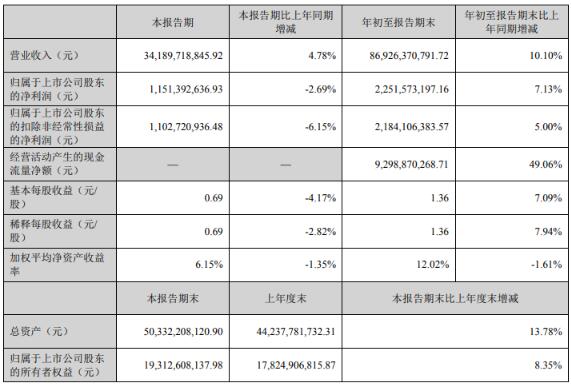 海大集團(tuán)10月19日發(fā)布三季度報(bào)告,2023年前三季度營(yíng)業(yè)收入869.26億元,同比增長(zhǎng)10.10%;歸母凈利潤(rùn)22.52億元,同比增長(zhǎng)7.13%。