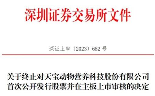 因2023年11月8日天寶動(dòng)物營(yíng)養(yǎng)科技股份有限公司申請(qǐng)撤回發(fā)行上市申請(qǐng)文件。根據(jù)《深圳證券交易所股票發(fā)行上市審核規(guī)則》第六十二條,深交所決定終止對(duì)其首次公開發(fā)行股票并在創(chuàng)業(yè)板上市的審核。