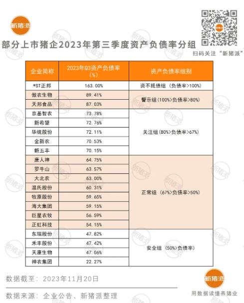正邦、傲農(nóng)、天邦3家在80%以上。通常認(rèn)為,當(dāng)上市企業(yè)負(fù)債率超過(guò)80%時(shí),便難以在資本市場(chǎng)獲得融資。