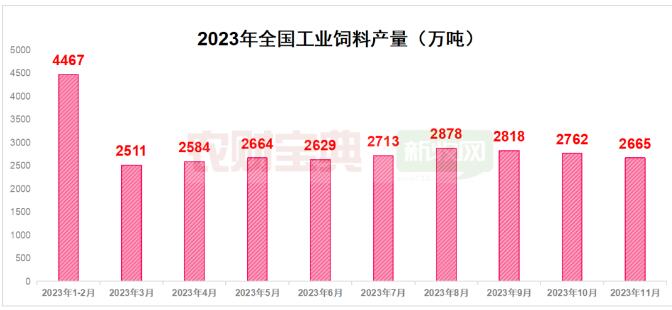 2023年12月26日,農(nóng)業(yè)農(nóng)村部畜牧獸醫(yī)局、中國飼料工業(yè)協(xié)會共同發(fā)布《2023年11月份全國飼料生產(chǎn)形勢》。今年前11月全國工業(yè)飼料產(chǎn)量達2.869億噸,同比增長4.0%。