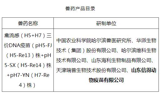 信得科技禽流感(H5+H7)三價DNA疫苗通過生產(chǎn)毒種變更備案審查
