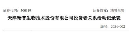 4月1日,瑞普生物公布投資者關(guān)系活動記錄表,以下是主要內(nèi)容: