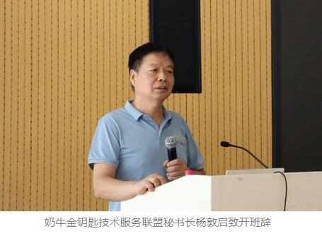 開班儀式上,奶牛金鑰匙技術(shù)服務(wù)聯(lián)盟的秘書長楊敦啟致辭。他強(qiáng)調(diào),堅(jiān)守“不忘初心、砥礪前行、奮發(fā)超越”的養(yǎng)牛人奮斗精神,是當(dāng)前奶業(yè)產(chǎn)業(yè)鏈共同應(yīng)對挑戰(zhàn)、勇克難關(guān)、精進(jìn)技能的行動指南。他激勵學(xué)員要加強(qiáng)內(nèi)在能力的培養(yǎng),彌補(bǔ)缺陷,發(fā)掘自身優(yōu)勢,勇于在逆境中尋找生機(jī),奮力前進(jìn)。他表示,本次研修培訓(xùn)班著重于經(jīng)營能力、管理能力、技術(shù)能力的素質(zhì)和執(zhí)行力培訓(xùn),旨在通過集合奶產(chǎn)業(yè)領(lǐng)域內(nèi)頂尖專家力量,向?qū)W員言傳身授,答疑解惑,使“牧場接斑人”用先進(jìn)理念武裝頭腦,面對經(jīng)營決策時能夠科學(xué)選擇并規(guī)避風(fēng)險,執(zhí)行管理和技術(shù)流程上精準(zhǔn)高效。確保每位學(xué)員能夠?qū)⑺鶎W(xué)知識轉(zhuǎn)化為思維能力和操作能力,學(xué)以致用,行業(yè)順逆,皆站鰲頭,引領(lǐng)奶業(yè)發(fā)展。