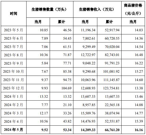 金新農(nóng):5月生豬銷量9.52萬頭,銷售收入1.42億元