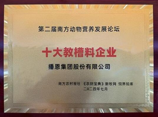 2024年7月14-16日,以“南方問道,融合知新”為主題的2024第二屆南方動物營養(yǎng)發(fā)展論壇在廣西南寧隆重召開。該論壇作為南方地區(qū)規(guī)模大、規(guī)格高、陣容強的動物營養(yǎng)領域盛會,吸引了近700位畜牧水產(chǎn)業(yè)的大咖齊聚。播恩集團由欽州播恩總經(jīng)理楊春帶隊參與,并憑借在動物營養(yǎng)領域的卓越表現(xiàn)和優(yōu)質(zhì)的教槽料產(chǎn)品,在此次論壇上獲得了“十大教槽料企業(yè)”榮譽。