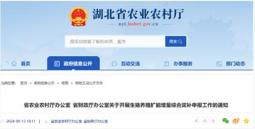 根據(jù)《省農(nóng)業(yè)農(nóng)村廳 省財(cái)政廳 省自然資源廳 省生態(tài)環(huán)境廳 省林業(yè)局關(guān)于印發(fā)推進(jìn)生豬等養(yǎng)殖業(yè)穩(wěn)增長促增收十條措施的通知》(鄂農(nóng)發(fā)〔2023〕17號)要求,現(xiàn)就開展生豬養(yǎng)殖擴(kuò)能增量綜合獎(jiǎng)補(bǔ)申報(bào)有關(guān)要求通知如下。