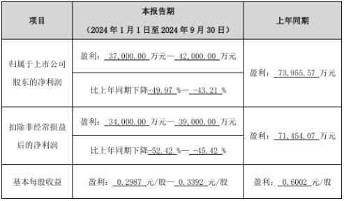 圣農(nóng)發(fā)展10月8日晚間發(fā)布業(yè)績預(yù)告,預(yù)計前三季度凈利潤3.7億元—4.2億元,同比下降49.97%—43.21%。