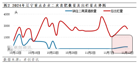 自10月24日開始,遼寧部分重點企業(yè)的生豬出欄量中,銷往二次育肥戶的訂單已消失,出欄走向全部為屠宰端。而在11月11-12日,部分養(yǎng)殖企業(yè)再度出現(xiàn)銷往二次育肥渠道的生豬訂單。價格跌至16元在一定程度上刺激養(yǎng)殖戶再度補(bǔ)欄,且飼料成本較低,二次育肥補(bǔ)欄有一定盈利預(yù)期。若二次育肥補(bǔ)欄提升,則對行情有一定支撐作用。
