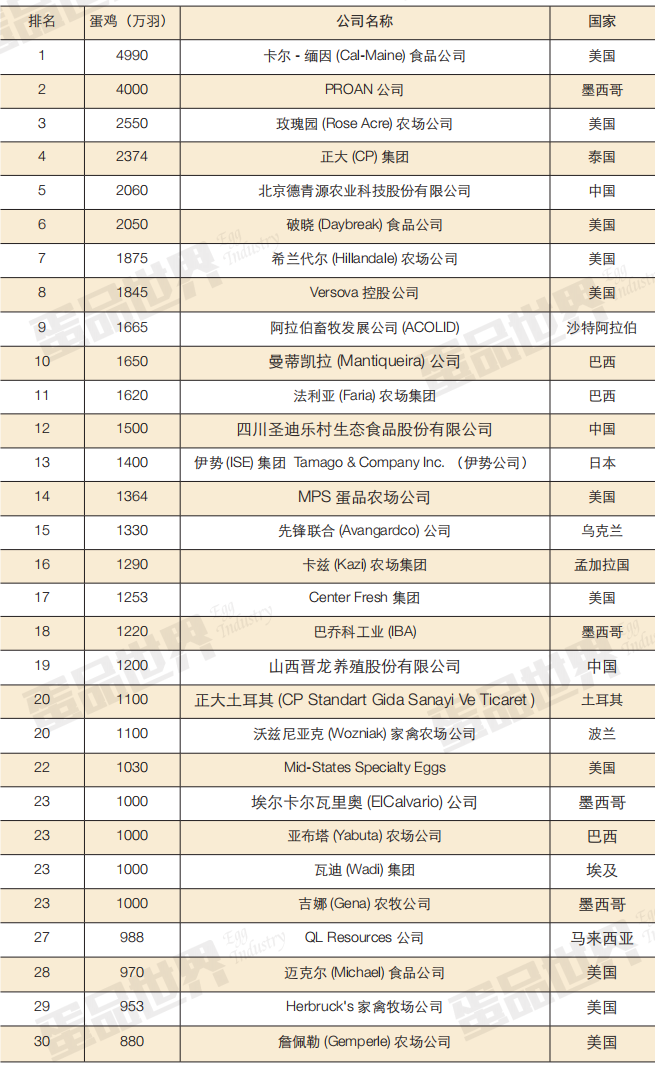 2024年全球蛋雞企業(yè)前30強(qiáng)榜單