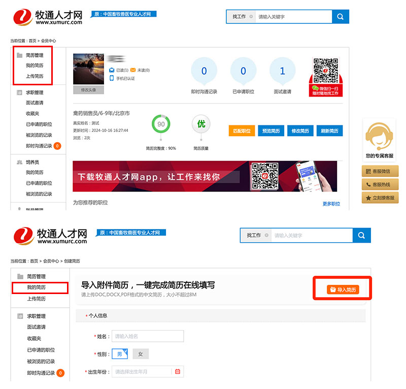 【上傳簡(jiǎn)歷】:若手機(jī)存儲(chǔ)有簡(jiǎn)歷文件可選擇該種方式(如下圖所示)。點(diǎn)擊上傳簡(jiǎn)歷—去上傳—選擇微信上傳或手機(jī)文件上傳,導(dǎo)入附件簡(jiǎn)歷后,按照要求簡(jiǎn)單填寫信息,然后可選擇性導(dǎo)入附件簡(jiǎn)歷里的教育經(jīng)歷及工作經(jīng)歷。